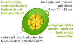 • verhindert das Überkochen bei Milch, Nudeln, Kartoffel uvm.