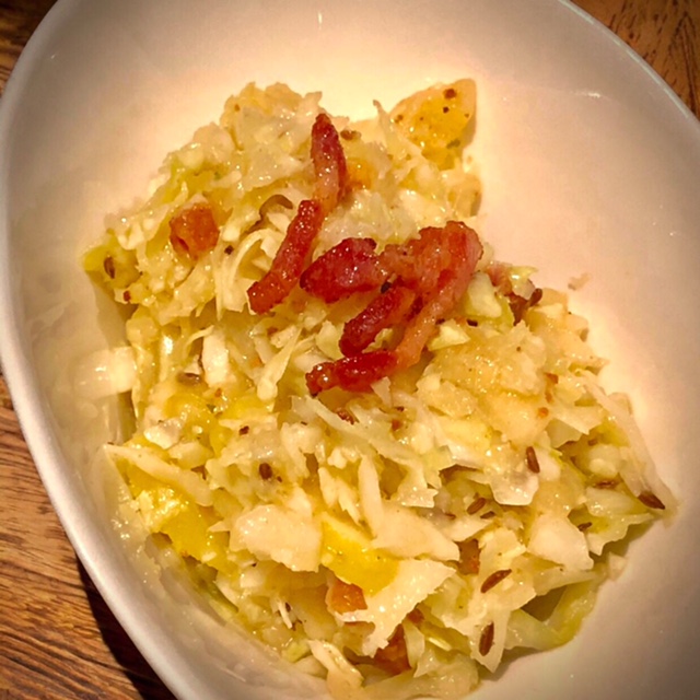 Bayerischer Krautsalat mit Speck Eine frische Beilage zu deinem herzhaften Krustenbraten.