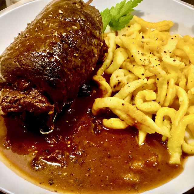 - Sud und Gemüse durch ein Sieb drücken und abgießen, entfetten und nach Belieben einkochen. Mit Salz und Pfeffer und ggf. Gewürze für Schmorbraten abschmecken. Tipp: gebe etwas Zartbitterschokolade mit in die Sauce, das gibt ihr einen ganz besonderen Geschmack! 1 – maximal 2 Stück reichen meist!