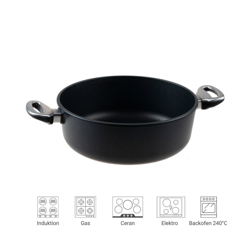 Die überlegenen Antihafteigenschaften (kein Anbrennen) und die gleichmäßige Hitzeverteilung unserer Töpfe, Pfannen und Bräter unterstützen eine kalorienarme und gesunde Zubereitung, weil wenig bis kein Fett benötigt wird.